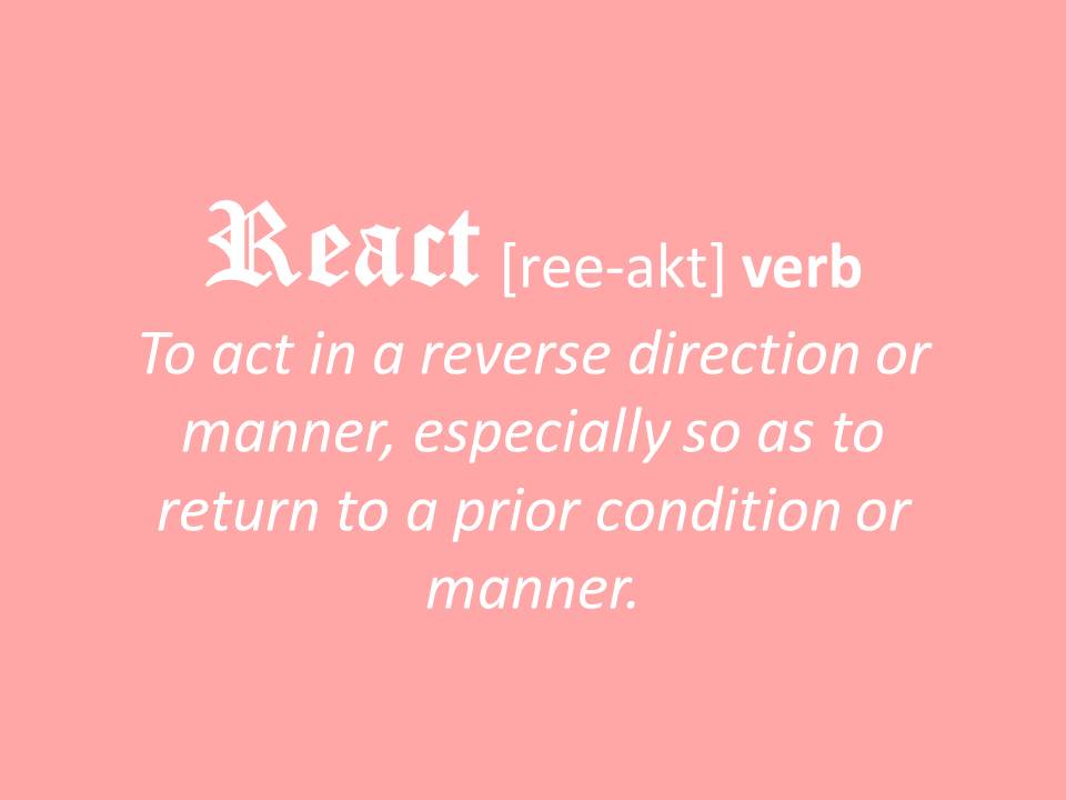 ReactReactions are like that. They are intended to maintain the status quo. Sometimes a fast reaction saves the day. When we drop something breakable, fast reflexes allow us to catch the object before it hits the floor. Grabbing our child before they step off the curb can avert disaster. Words aren’t always like that, and there often isn’t that lightning fast need for them to leave us. But often they are on their way to quickly.