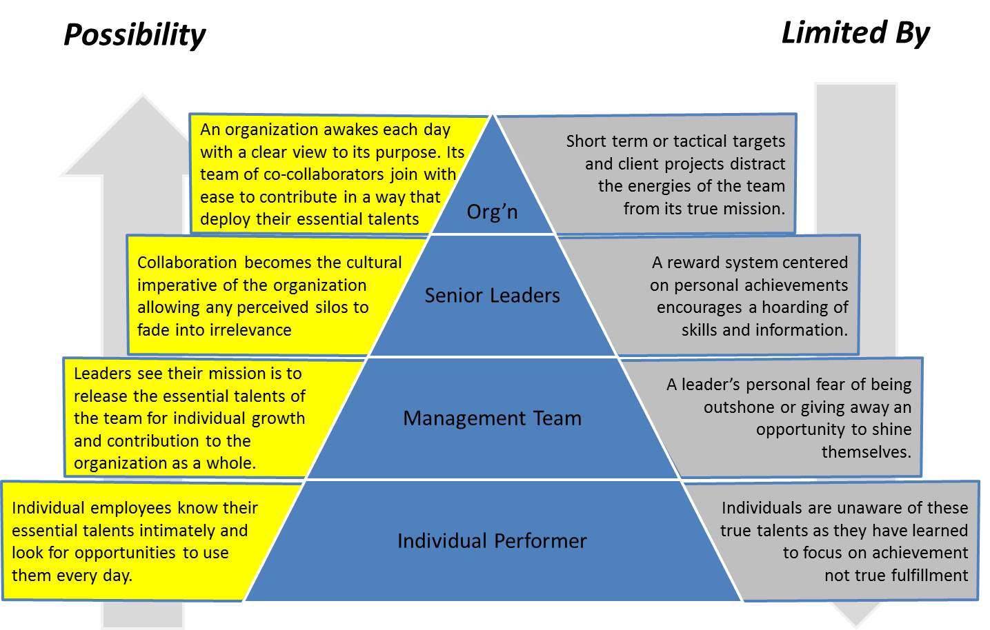 1. This is a wonderful chart Ian! I like how it also shows how the possibilities are limited. The limitations seem to mostly indicate some level of insecurity for people at different levels. I’ve seen this many times and try to be aware when it surfaces in me. The challenge is to create a safe place for everyone to be able to share their fears and be encouraged in their potential?